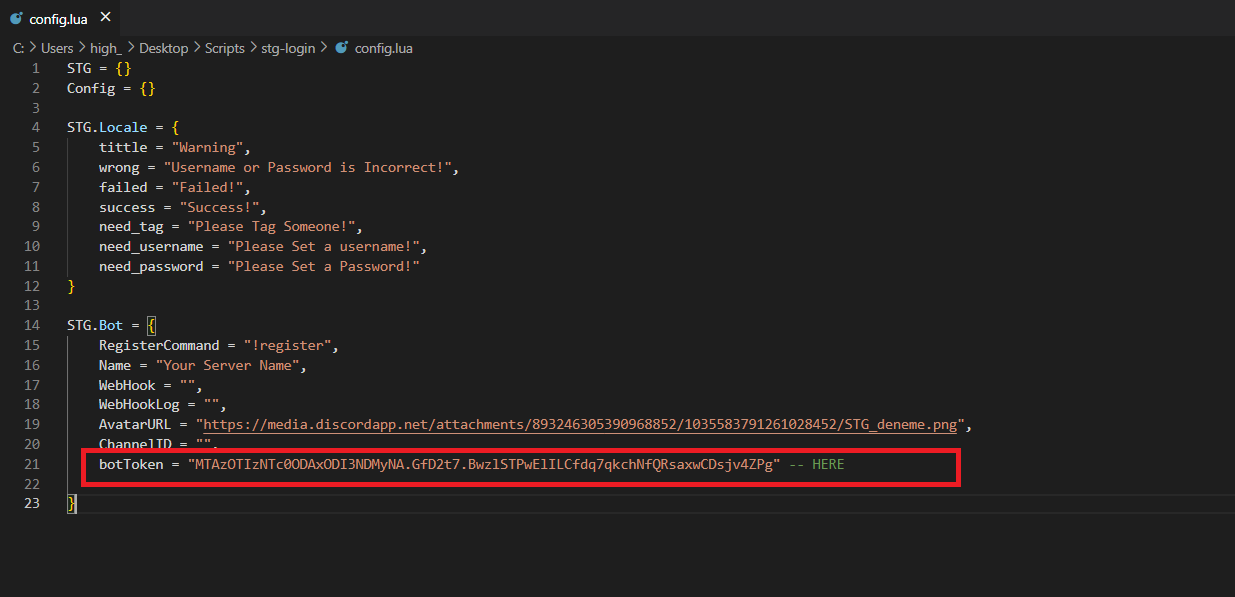 Paste the token you copied before into Config file